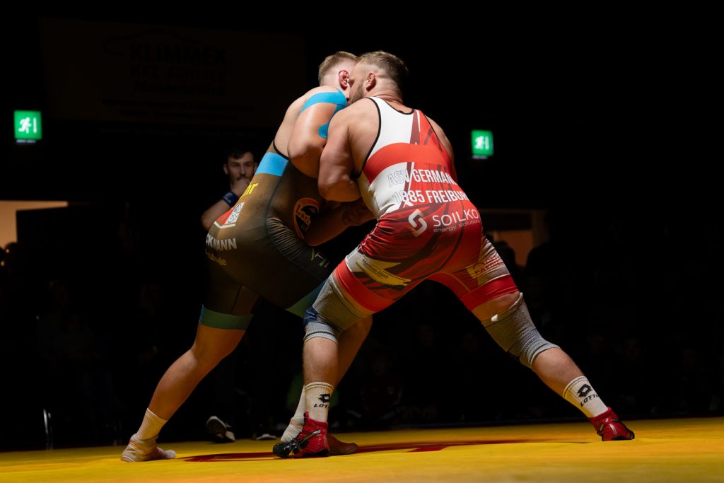 Ein besonderer Moment war der blitzschnelle Schultersieg von Daoud Issayev (75kg A/Freistil) – nur 52 Sekunden reichten, um vier Punkte auf das Freiburger Konto zu bringen. Am Samstag musste unser Team in Weilimdorf antreten. Der Kampf versprach im Vorfeld bereits große Spannung. Nach einem deutlichen 2:14 Pausenrückstand bewies unser Team aber Nervenstärke und wendete in der zweiten Kampfhälfte das Blatt entscheidend zu unseren. Gunsten.