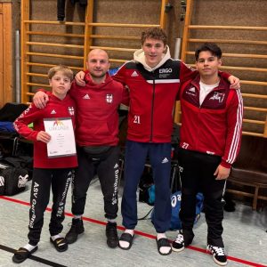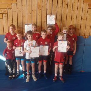 errungen sich Maximilian Eryganov (27kg) und Laurin Neff (29kg). Weiterhin standen auf der Matte: Viktor Sokolov (27kg) 5. Platz, Damian Walter (29kg) 5. Platz, Emilian Neff 38kg) 11. Platz und Oskar Grosse (50kg) 4. Platz.