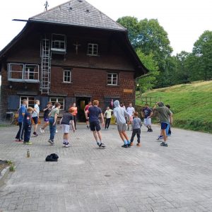 Direkt am ersten Ferientag (31.08.25) ging es für rund 20 unserer Ringerkids im Alter von 6 bis 15 in den Schwarzwald. Nachdem das komplette Gepäck in den Vereinsbus geladen wurde, brachte die Straßenbahn und der Zug alle hoch nach Seebruck an den Schluchsee. Danach noch ein Stück Wanderung und schon war das alte Schwarzwaldhaus Kechengut zu sehen, welches nun für 2 Nächte und Tage in Ringerhand war. Es wurde gemeinsam gespielt, trainiert, gegessen, gegrillt, am Lagerfeuer Stockbrot und Marshmallows geröstet, Geburtstag gefeiert, wenig geschlafen,….. Und auch der aufkommende Regen am 2. Abend konnte uns nichts anhaben. Als dann am 02.08.25 alle Sachen wieder verpackt waren, fiel die Wanderung zurück zum Bahnhof Seebruck jedoch ins Wasser, so dass alle verfügbaren Fahrzeuge als Taxi zum Bahnhof genutzt wurden. Glücklich, trocken und sehr müde sind dann gegen Mittag wieder alle am Vereinsheim angekommen, sogar der Vereinsbus, vollgepackt bis unters Dach, kam nur 5 Minuten nach den Ringern an.