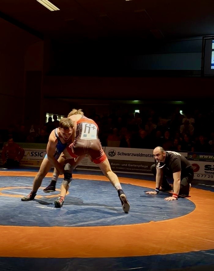 David Brenn sorgte mit schnellen Beinangriffen für die nächste klare Viererwertung zugunsten der Gastgeber. Die Umstellung in dieser Gewichtsklasse sollte sich aus unserer Sicht noch bewähren. Im Halbschwergewicht überrumpelte Maxi Remensperger seinen Gegner und übertrug diesen nach einem ansehnlichen Überwurf. Der augenscheinlich angeschlagene Luca Svaicari konnte sich aus der misslichen Lage nicht mehr befreien und unterlag überraschend auf Schulter. Nun zu der zuvor erwähnten taktischen Umstellung. Ivo Dimov trat in der Klasse bis 66 kg stilartfremd gegen David Langenbacher an. Ein Schachzug, mit dem die Gastgeber mutmaßlich nicht gerechnet haben. Und die Rechnung ging mit einem technischen Überlegenheitssieg von Ivo Dimov vollumfänglich auf. In der Klasse bis 86 kg Olegk Motsalin gewann ein zähes, körperbetontes 86-kg-Duell und zeigte viel taktisches Gespür. Auch Alish Alish überzeugte im Kampf gegen den starken Leon Schetterer, der zwar mutig agierte, sich aber am Ende knapp geschlagen geben musste. Tennenbronn meldete sich durch den schnellen Schultersieg von Fabian Reiner zurück. Somit stand es vor den beiden letzten Kämpfen 12:12 in der Mannschaftswertung. Doch Mo und Daoud bewiesen Nervenstärke. Mohammad Damnkhoshk und anschließend Daoud Issayev entschieden die beiden 75-kg-Kämpfe mit maximaler Punkteausbeute und machten den Gesamtsieg perfekt. Am Ende bleibt ein sportlicher Abend mit großem Einsatz beider Teams. Tennenbronn behauptet Platz drei und zeigt trotz Niederlage, warum es zur Spitzengruppe gehört. Wir sammeln wichtige Moral für die kommenden Aufgaben und bleiben stabil auf Rang fünf.
