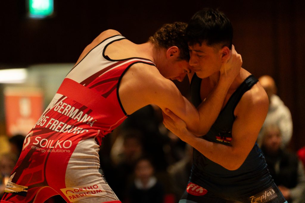 Am Samstag erlebten die Zuschauer in der gut besuchten Bundschuhhalle einen mitreißenden Mannschaftskampf, der uns einen 29:8-Sieg und den Sprung auf den 3. Tabellenplatz in der Regionalliga Baden-Württemberg bescherte. Ein besonderer Dank geht vorab an die Sportfreunde der DJK Schlatt, die von der ersten Minute an unser Team mitanfeuerten und zur Bestleistung trieben. Der Abend begann furios. Mika Hahn (57 kg, Griechisch-Römischer Stil) setzte gegen Giuliano Perri von Musberg ein starkes Zeichen. Mit einer überzeugenden Leistung belohnte sich Mika für seine kontinuierliche Leistungssteigerung über die gesamte Saison hinweg mit seinem ersten Sieg in der Regionalliga BW.