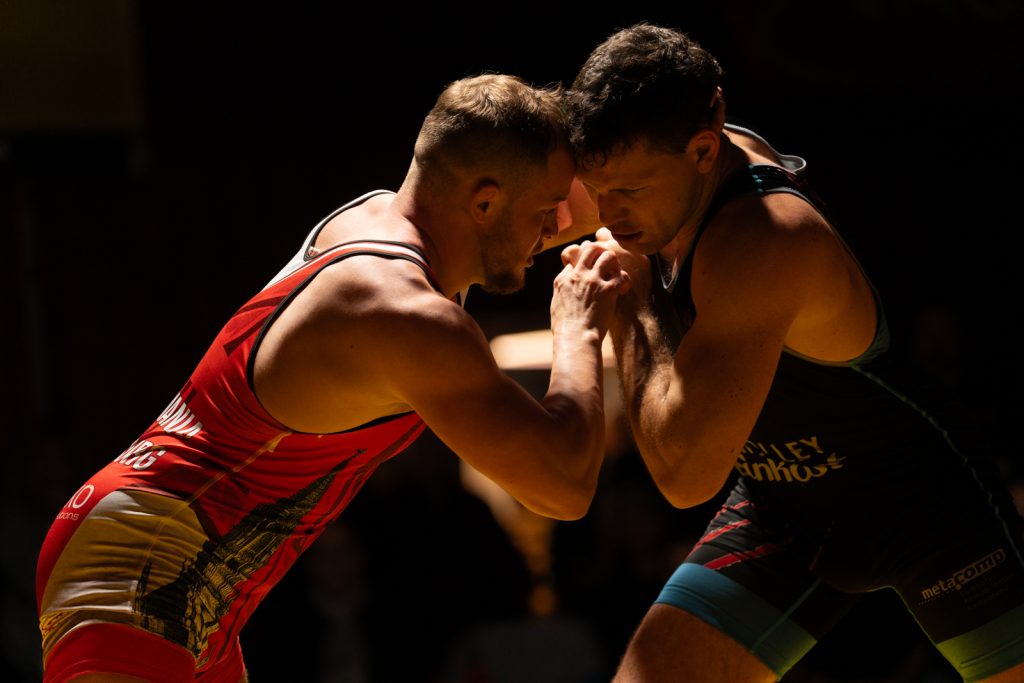 Michael Kaufmehl (130 kg, Freistil) ließ seinem Gegner Jonas Skirlo keine Chance und gewann durch technische Überlegenheit mit 15:0 in nur 2:50 Minuten. Die Fans jubelten, als unser Trainer unaufhaltsam Punkte sammelte und den Kampf souverän für sich entschied. In der Klasse bis 61 kg gingen die Punkte kampflos an Ivo Dimov. Nach drei Kämpfen hatten wir durch die maximale Ausbeute einen komfortablen Vorsprung in der Mannschaftswertung.