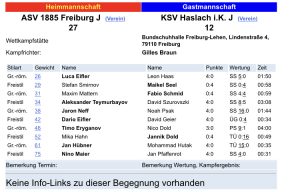 Erst hat man kein Glück und dann kommt auch noch Pech dazu! Ein alt bekanntes Sprichwort. Leider hat es uns am vergangenen Wochenende erwischt. Nach wie vor haben wir mit Verletzungsproblemen zu kämpfen. Daher konnten wir mit unserer 1. Mannschaft gegen Gresgen nur mit ursprünglich 9 Athleten an die Waage. Aufgrund eines Richtlinienverstoßes musste dann leider auch noch der auf 66 kg geplante Ringer nachträglich von der Wiegeliste gestrichen werden. So sind leider die Regeln und auch wir müssen uns daran halten. Somit stand bereits nach dem GAng über die Waage die Niederlage unserer 1. Mannschaft mit 40:0 zugunsten der Gäste aus Gresgen fest. Nichtsdestotrotz konnten wir die Zuschauer mit einem spannenden Mannschaftskampf zumindest etwas entschädigen. Mehr Anlass zur Freude hatte dafür unsere Jugend, die den Vorkampf in der Bezirksjugendliga gegen den Nachwuchs vom KSV Haslach im Kinzigtal deutlich mit 27:12 gewinnen konnte. Am kommenden Wochendende steht für unsere 1. Mannschaft ein Auswärtskampf bei der Bundesligareserve vom ASV Urloffen an. Kampfbeginn in Urloffen ist um 20 Uhr in Urloffen.