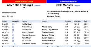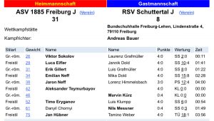 Am vergangenen Wochenende waren alle Mannschaften vor heimischem Publikum im Einsatz. Unsere Jugend setzte sich deutlich gegen den Nachwuchs vom RSV Schuttertal durch. Viktor Sokolov, Luca Eifler, Erik Gillert, Emilian Neff, Jaron Neff, Alexander Teymurbayov, Timo Eryganov und Jan Hübner konnten ihre Kämpfe erfolgreich gestalten.