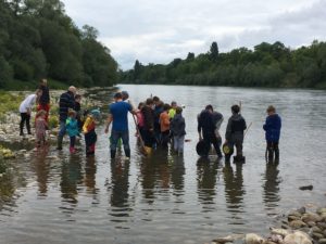 Aber es hat sich gelohnt. Wir alle hatten einen tollen Tag am Rhein, unter Anleitung von unserm Guide durften die Kinder sich im Goldschürfen versuchen. Jeder hat seinen kleinen Schatz im Gläschen mit nachhause bekommen. Während die Kinder am schürfen und planschen waren, kümmerten sich die Eltern um das Leibliche wohl. Es wurde ein Grillplatz gebaut, Holz gesucht und Feuer gemacht. Es gab für alle Würstchen und Steak. Zum Abschluss wurde für die Kids noch eine Schnitzeljagd veranstalte.