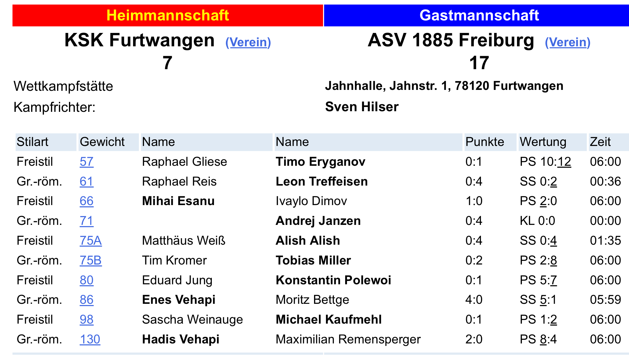 Mit 17:7 setzte sich unsere erste Mannschaft in Furtwangen durch. [...]