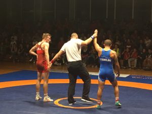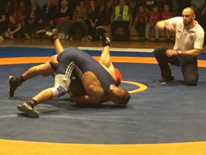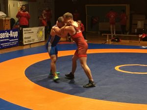 Ein großes Kämpferherz bewies Moritz Bettge in der Klasse bis 86 kg gegen keinen geringeren als Teimuarz Beradze. Moritz musste sich gegen den Allensbacher Sieggaranten aufs Verteidigen beschränken und konnte eine technisch überhöhte Niederlage verhindern.
